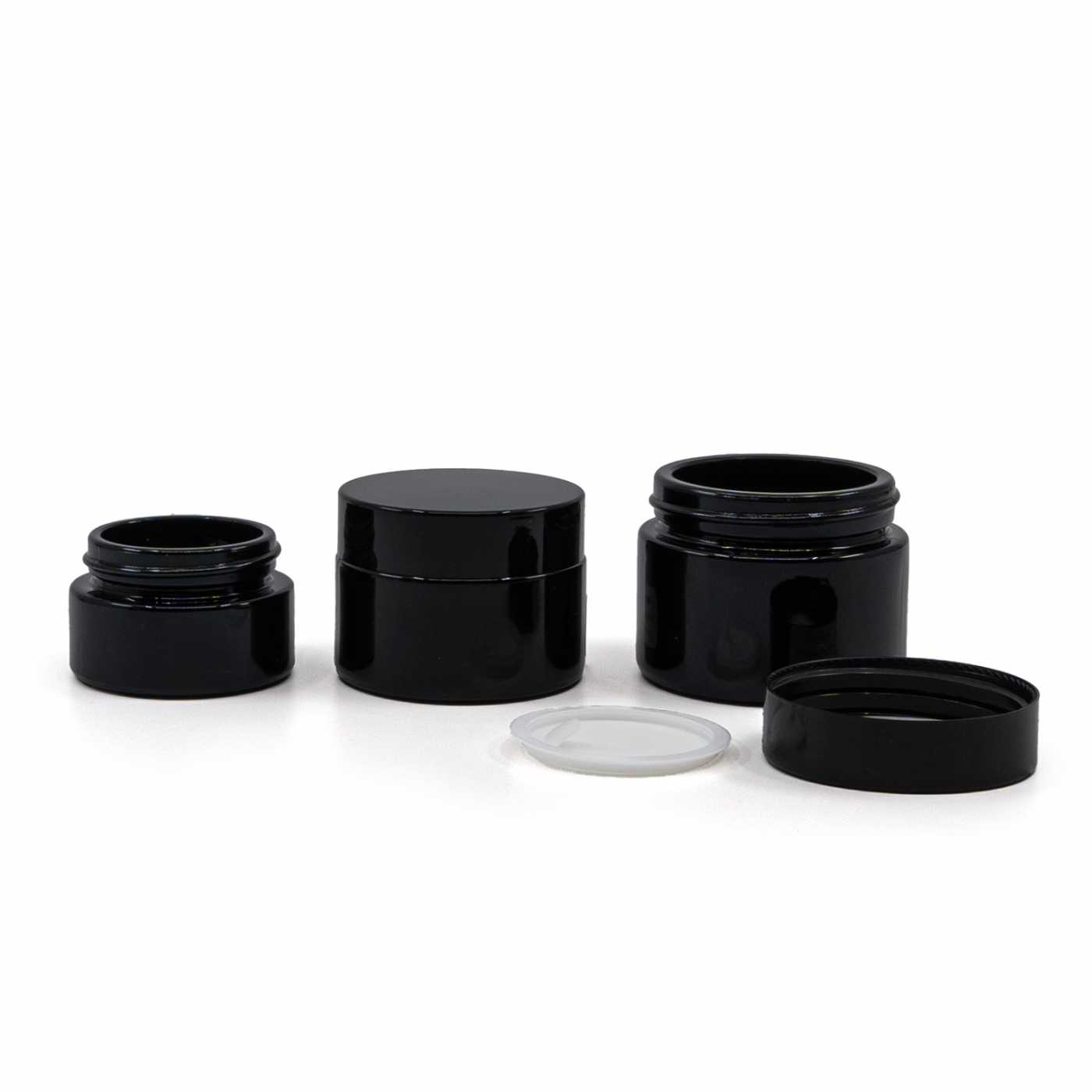 Bocal en verre noir brillant, couvercle en plastique noir, 50 ml
