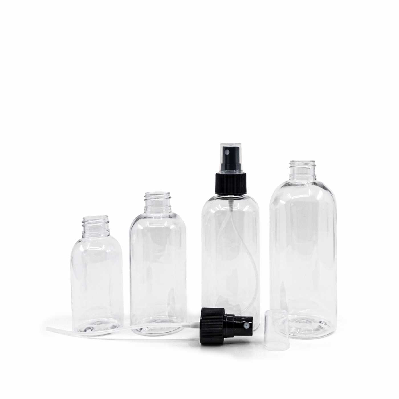 Bouteille arrondie en plastique transparent, vaporisateur fin noir, 100 ml