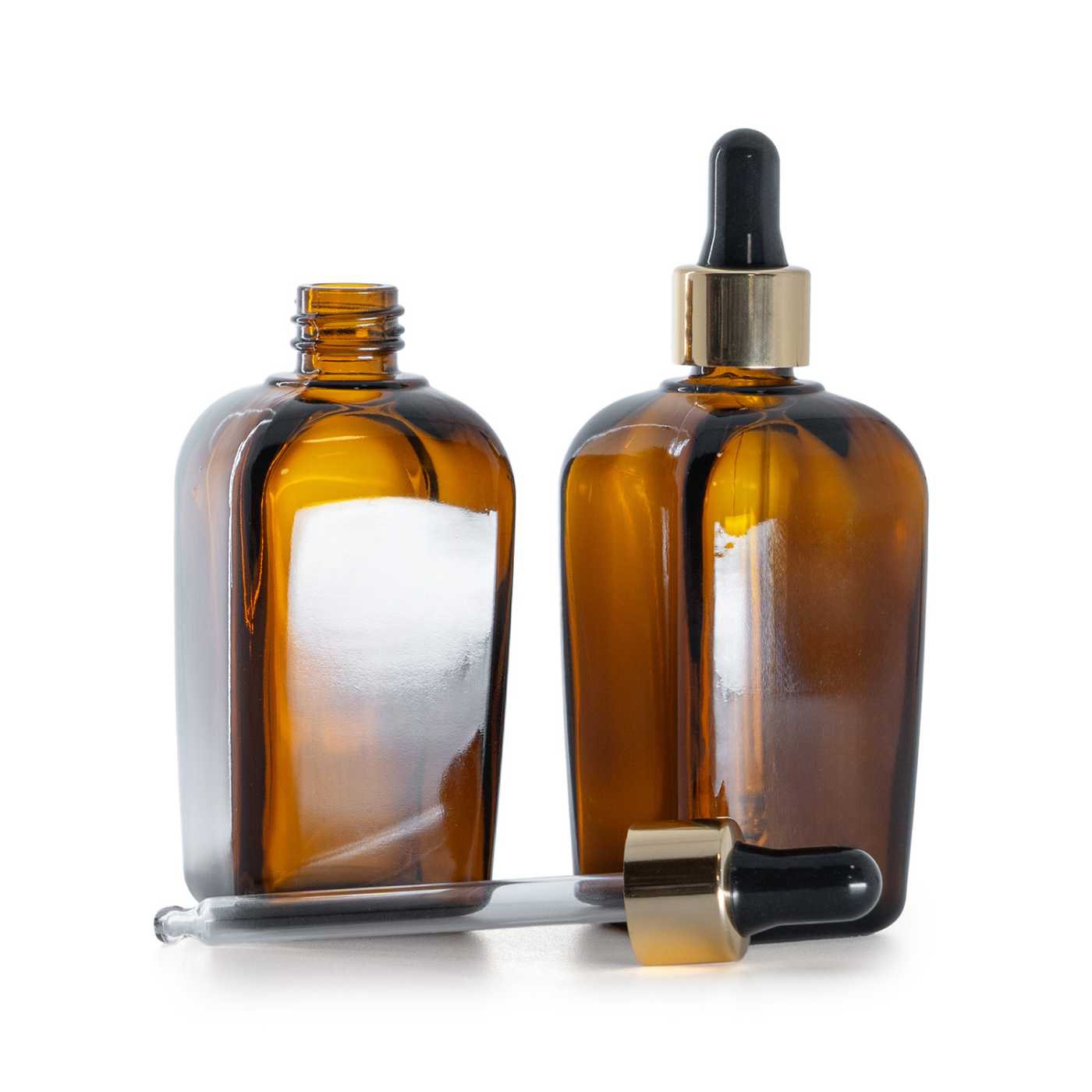 Bouteille carrée en verre ambré, compte-gouttes noir doré, 90 ml