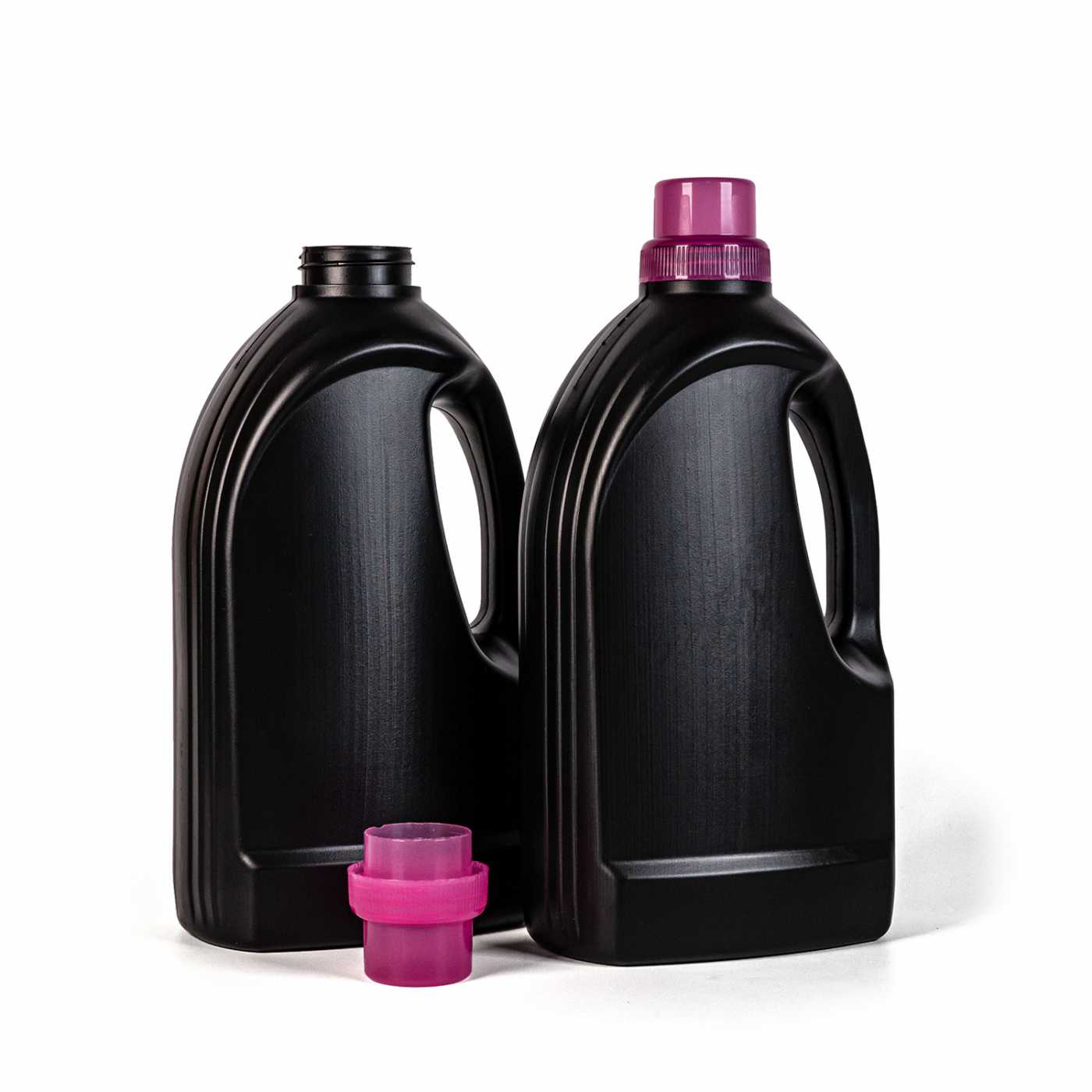 Couvercle en plastique transparent rose pour bouteille de 1,5 l d'assouplissant.