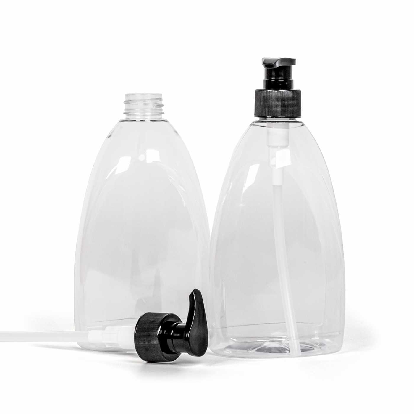 Bouteille de savon en plastique transparent, pompe noire, 500 ml, Lotion Pompe plastique noire