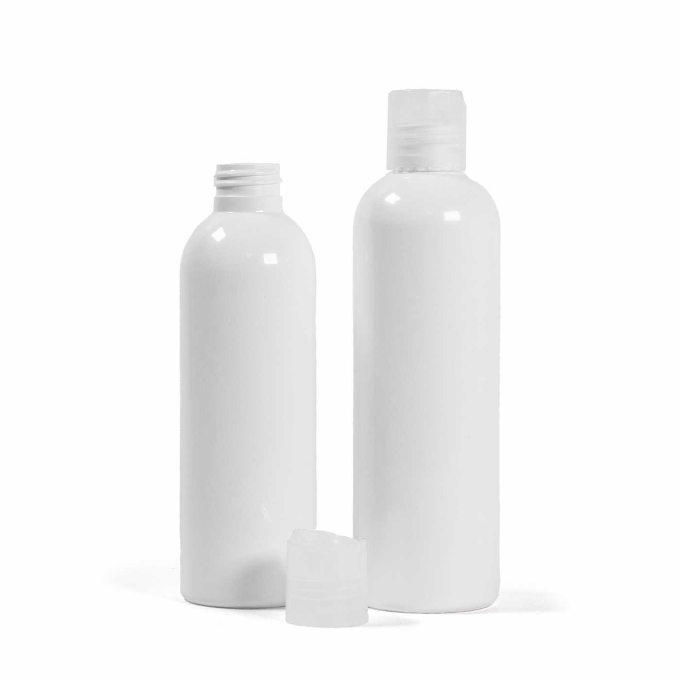 Bouteille en plastique blanc en PET avec une surface brillante.