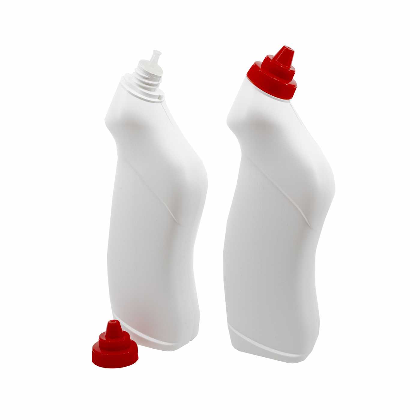 Bouteille en plastique blanc pour le nettoyant WC, bouchon rouge, 750 ml