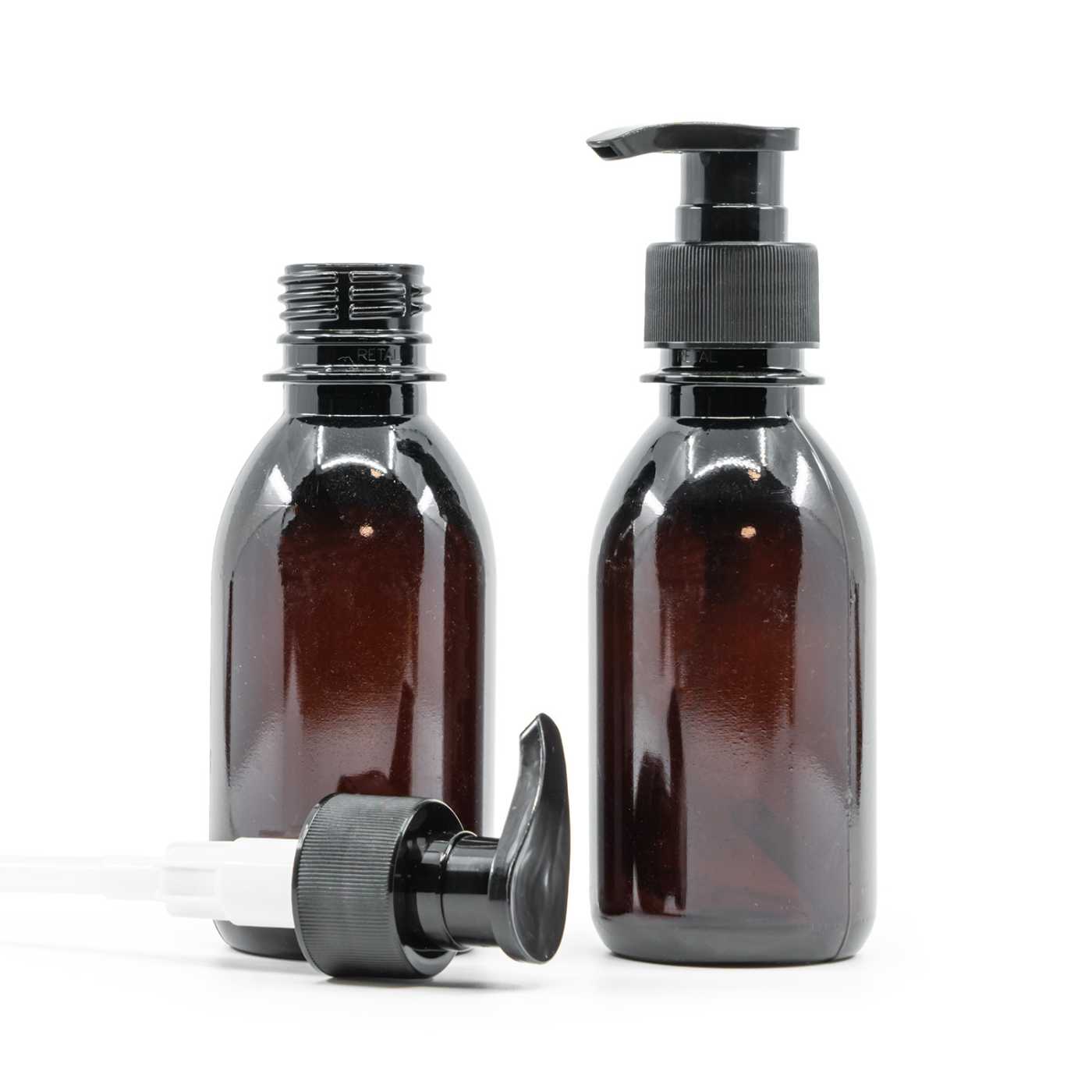 Bouteille en plastique marron, pompe à lotion noire, 150 ml