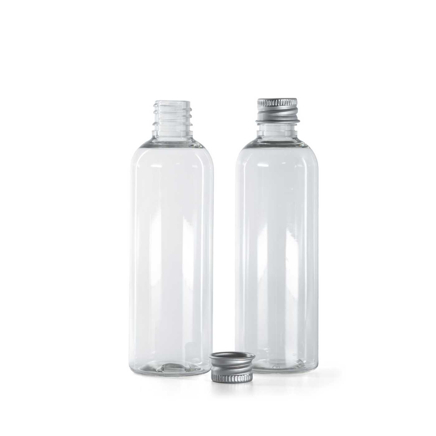 Bouteille en plastique transparent en PET avec une surface brillante. Volume : 100 ml, volume total 117 mlHauteur du flacon : 122 mmDiamètre du flacon : 38 mmC... read more