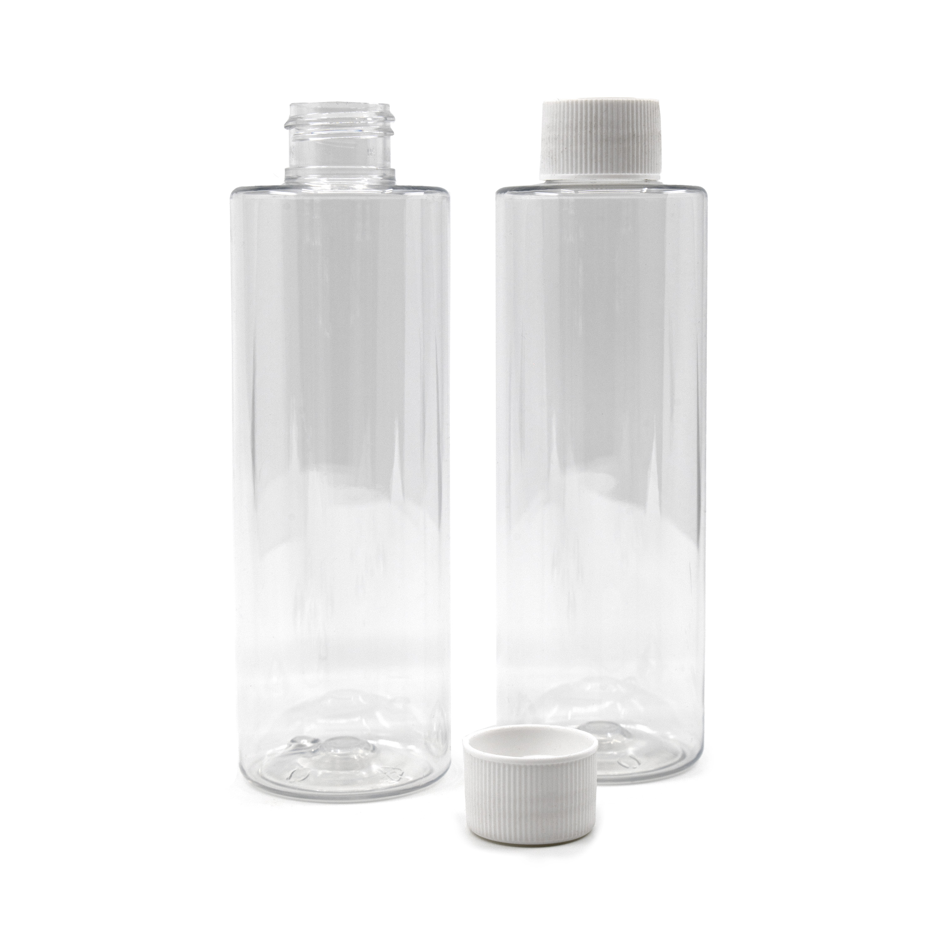 Bouteille en plastique transparent, idéale pour le stockage de divers liquides, huiles, lotions, etc. Elle est semi-rigide, mais peut être pressée.