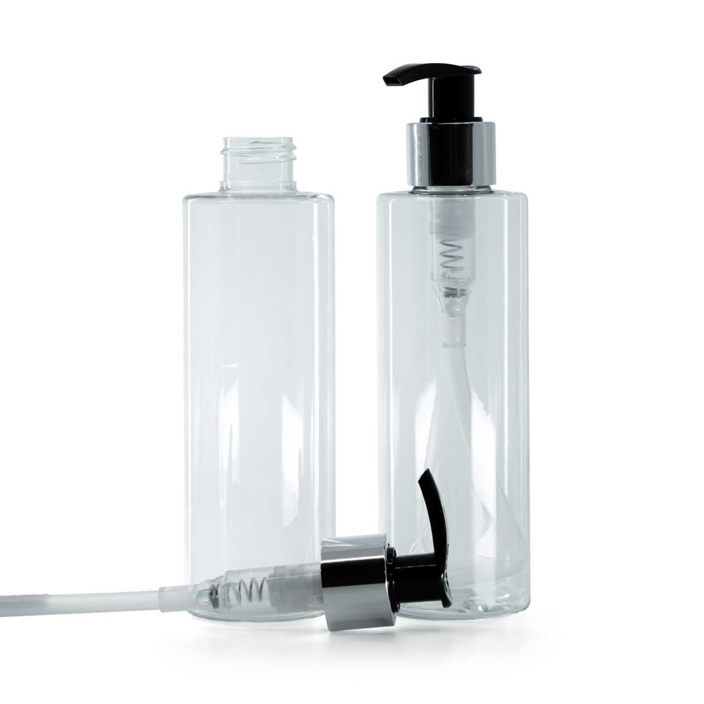 Bouteille en plastique transparent, idéale pour le stockage de divers liquides, huiles, lotions, etc. Elle est semi-rigide, mais peut être pressée.