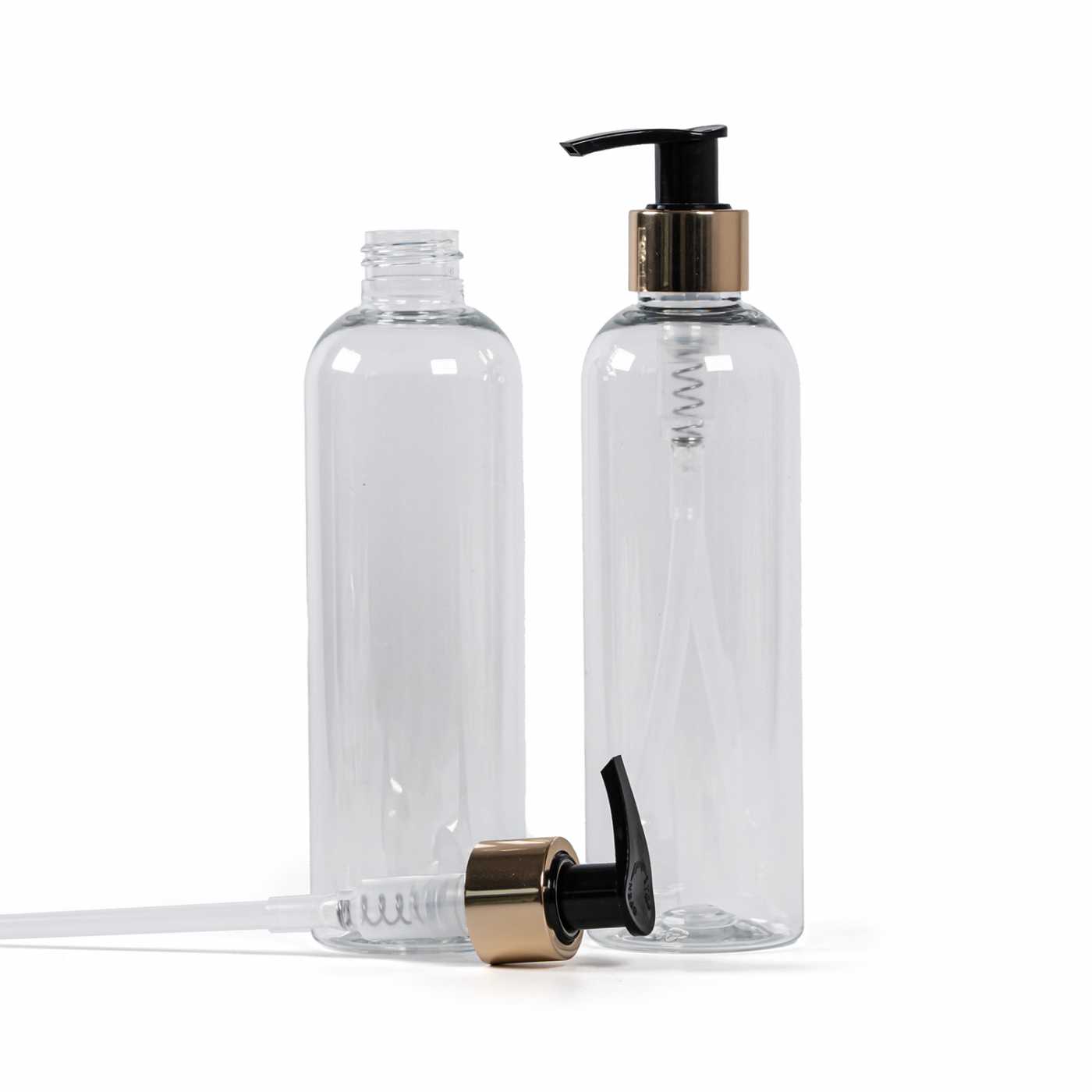 Bouteille en plastique transparent, idéale pour le stockage de divers liquides, huiles, lotions, etc. Elle est semi-rigide, mais peut être pressée.