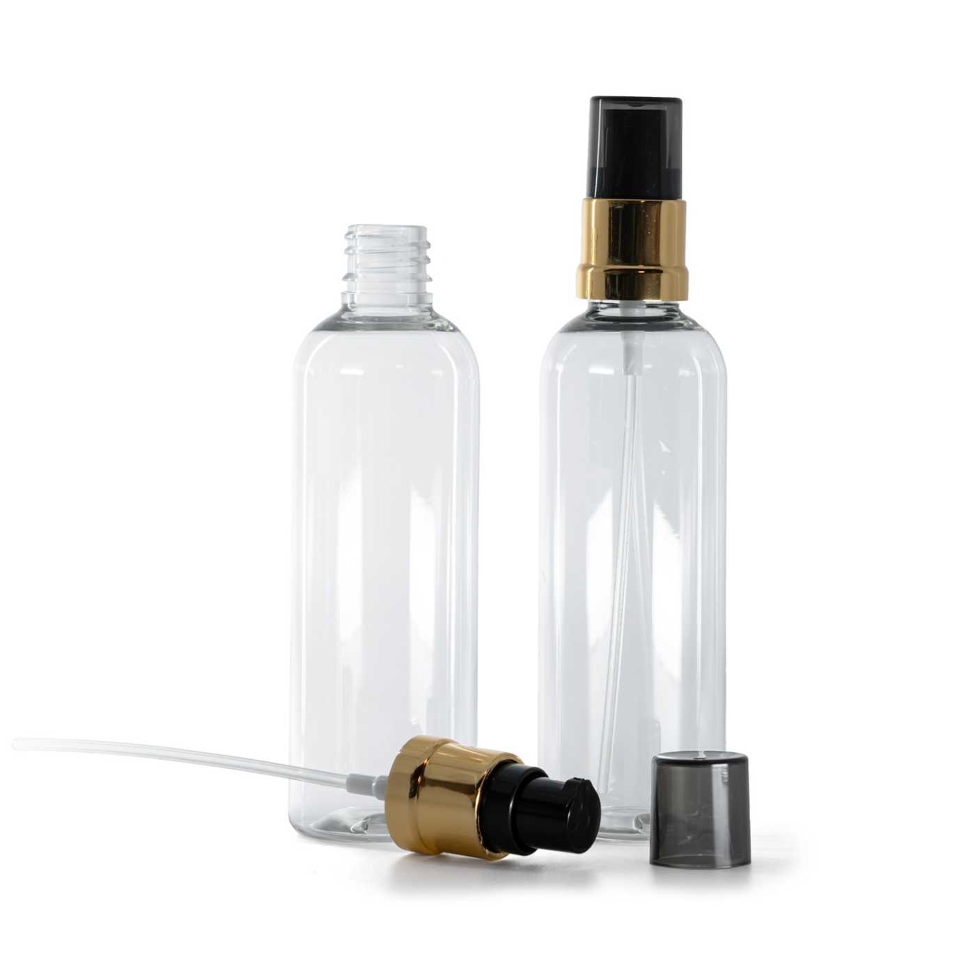 Bouteille en plastique transparent en PET avec une surface brillante. Volume : 100 ml, volume total 117 mlHauteur du flacon : 122 mmDiamètre du flacon : 38 mmC... read more