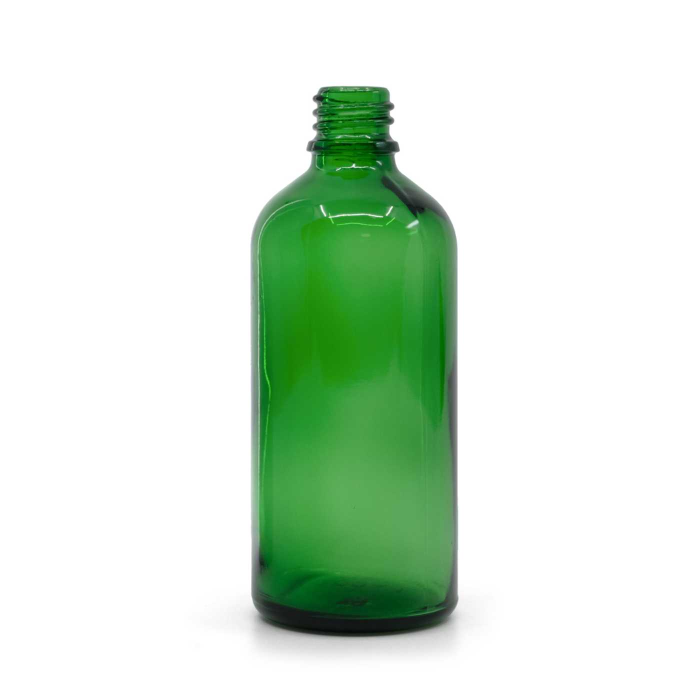 Le flacon en verre, appelé fiole, est fait d'un verre épais de couleur vert foncé. Il est utilisé pour le stockage de liquides qu'il protège efficacement de la lumière grâce à sa couleur.