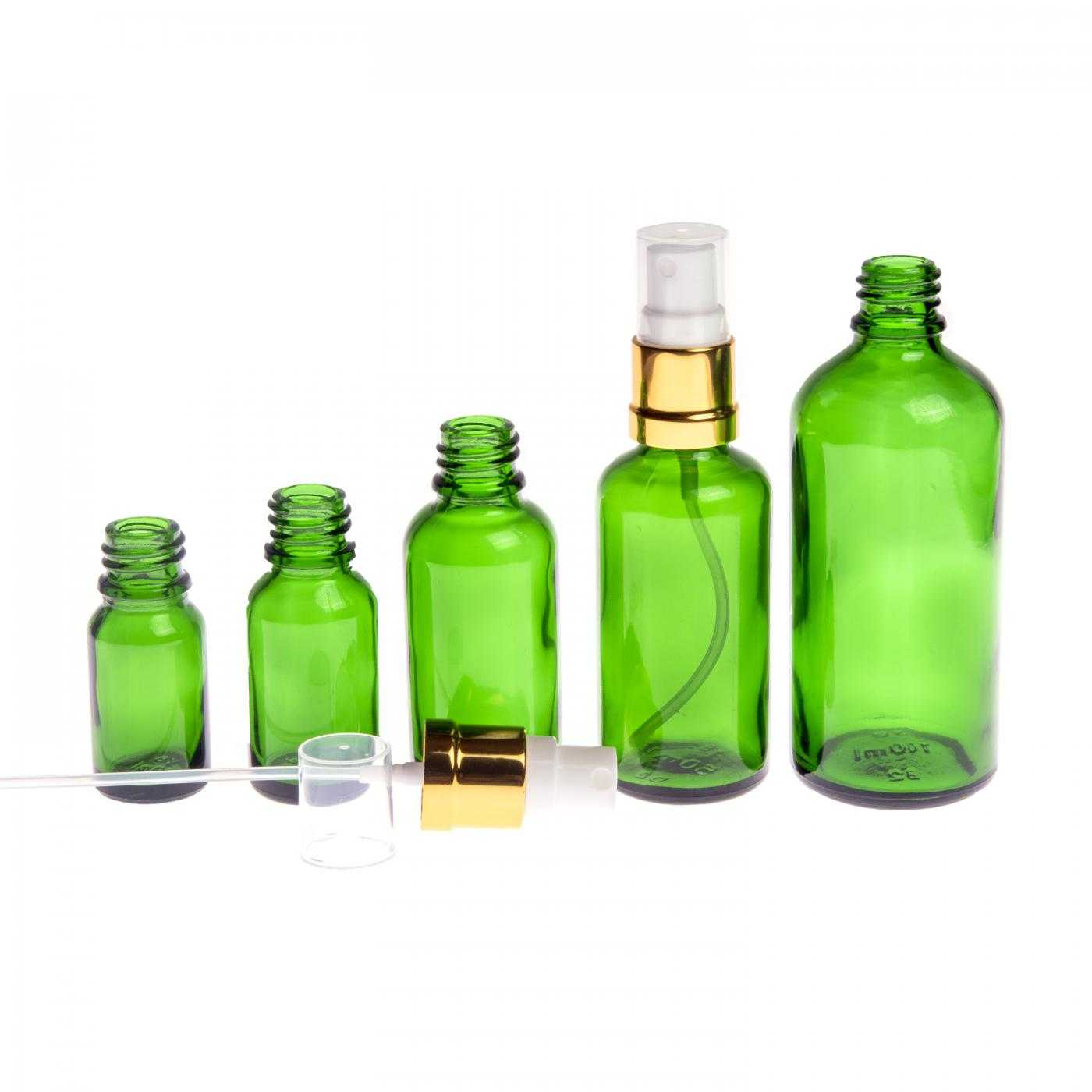 Le flacon en verre, appelé fiole, est fait d'un verre épais de couleur vert foncé. Il est utilisé pour le stockage de liquides qu'il protège efficacement de la lumière grâce à sa couleur.