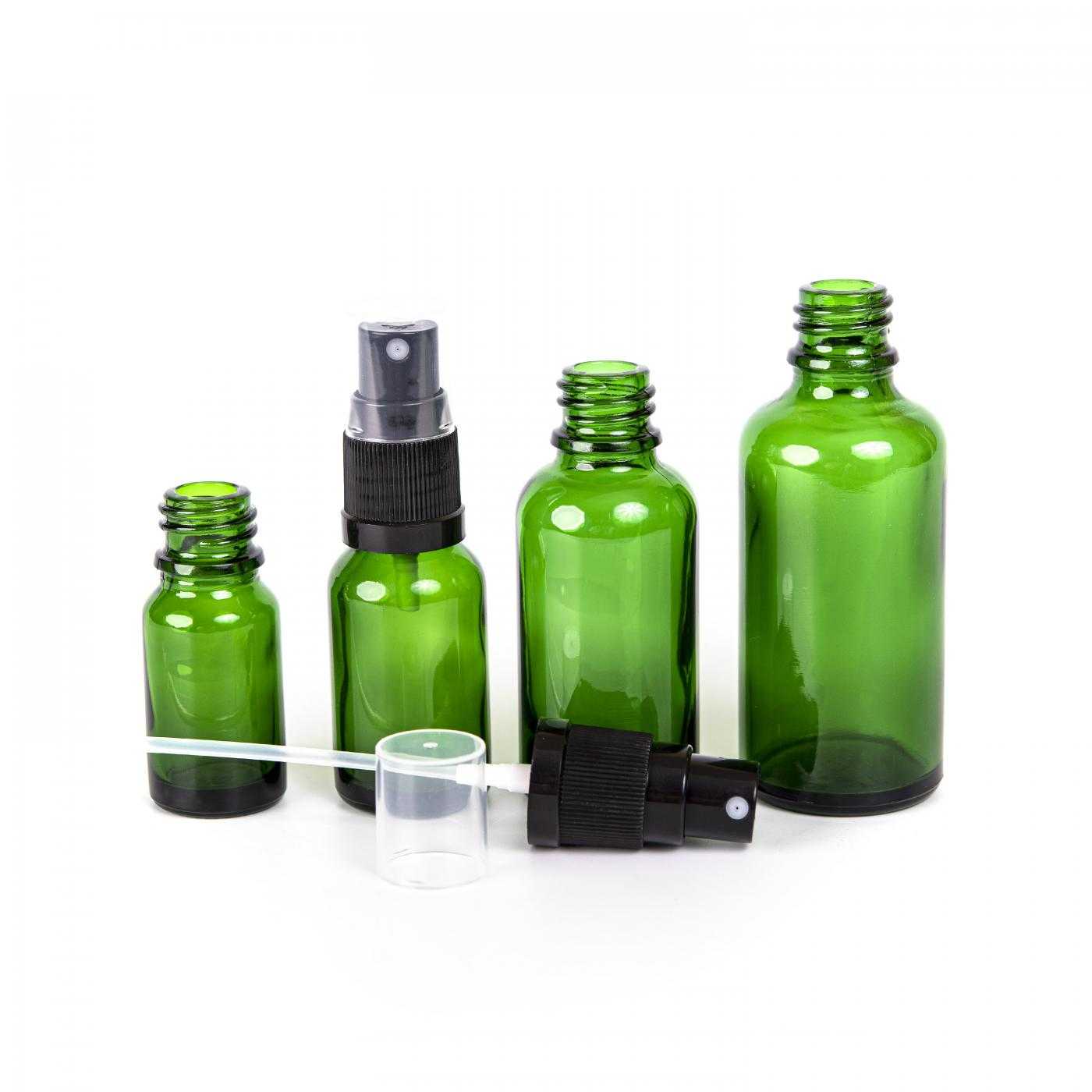 Le flacon en verre, appelé fiole, est fait d'un verre épais de couleur vert foncé. Il est utilisé pour stocker des liquides que sa couleur protège efficacement de la lumière.