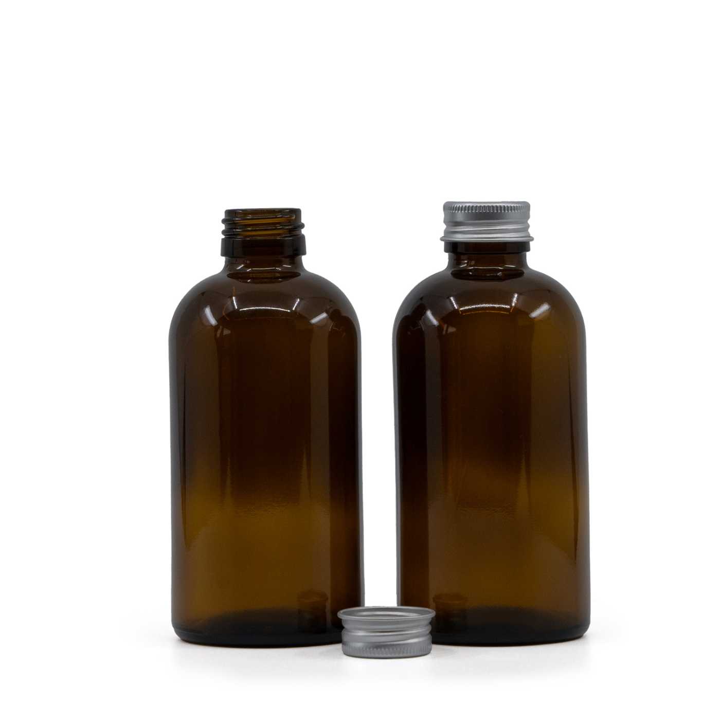 Bouteille ronde en verre Sirup Amber Bosotn, bouchon en aluminium argenté, 250 ml