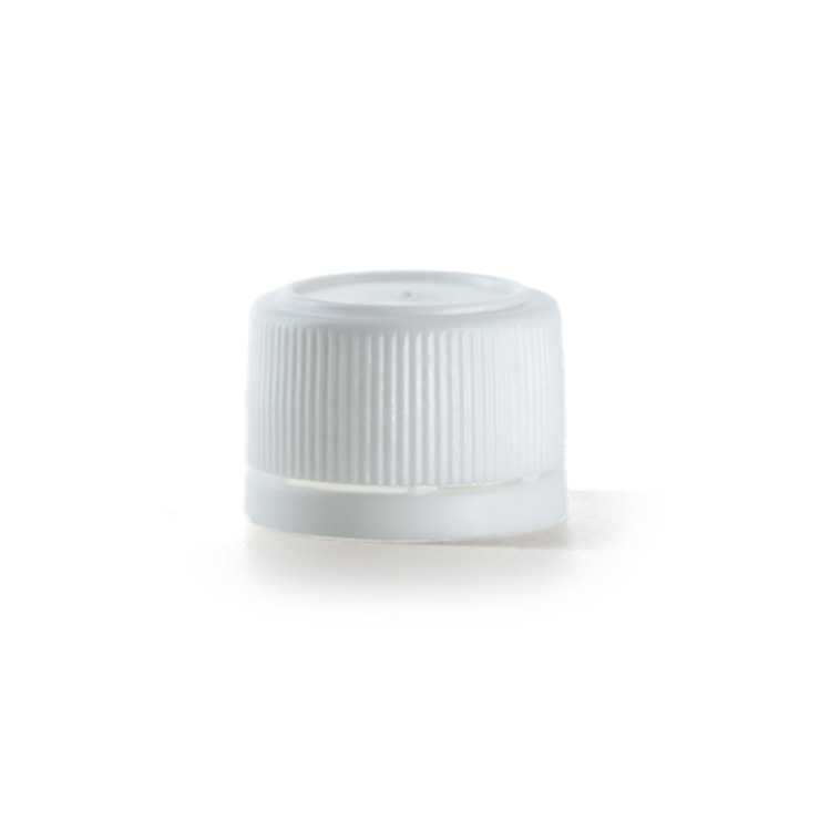 Bouchon en plastique blanc avec serrure pour flacon en plastique blanc avec un diamètre de col de 18 mm. Ne convient pas aux flacons en verre GL18.Le bouchon est également doté d'une bague de verrouillage qui se brise après la première ouverture.