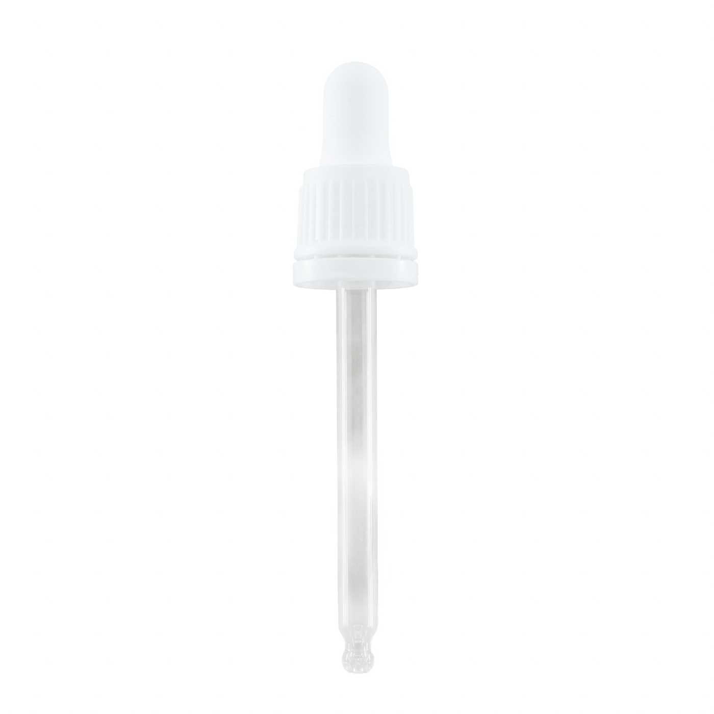 Compte-gouttes en plastique blanc, adapté à un flacon d'un diamètre de 18 mm et d'un volume de 50 ml.