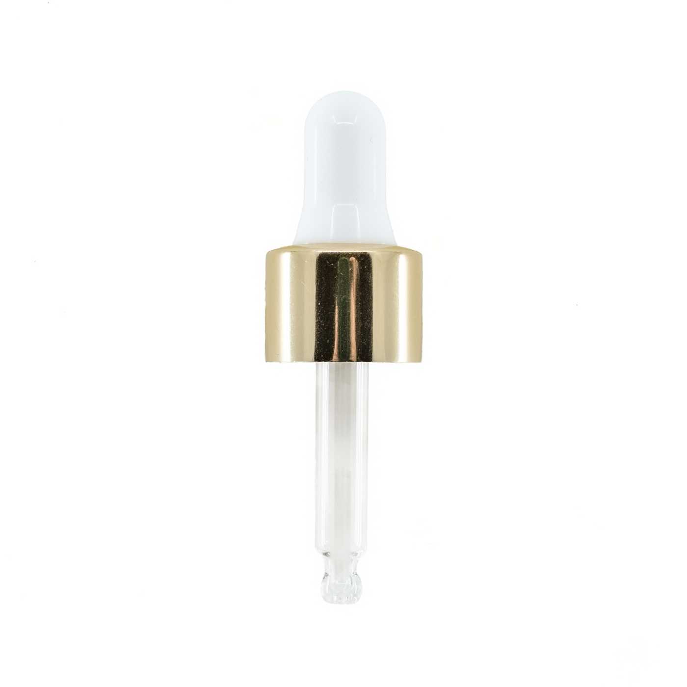 Pipette en verre de couleur blanche/or, adaptée aux flacons ayant un diamètre de col de 18 mm et un volume de 5 ml.