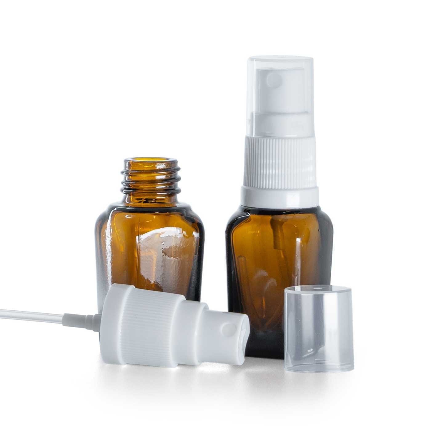 Flacon en verre, dit flacon, en verre brun. Il a une forme carrée et peut être combiné avec différents bouchons d'un diamètre de 18 mm.Volume : 10 ml