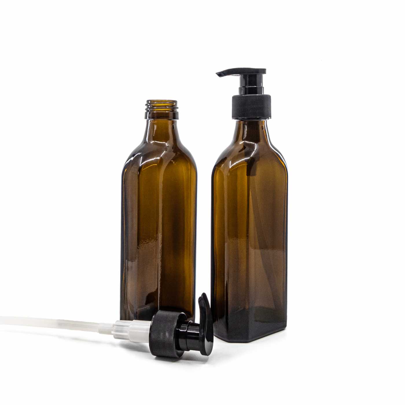 Pompe en plastique noir pour émulsions, lotions corporelles et autres liquides visqueux. Convient aux flacons en verre avec un diamètre de col de 28 mm. Dosag... read more