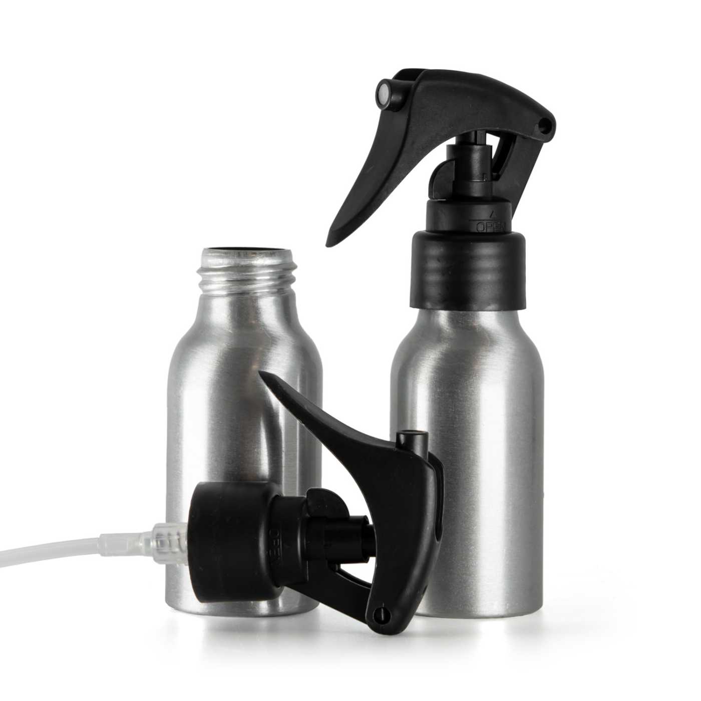 Flacon en aluminium, mini-vaporisateur à gâchette, noir mat, col lisse, 50 ml