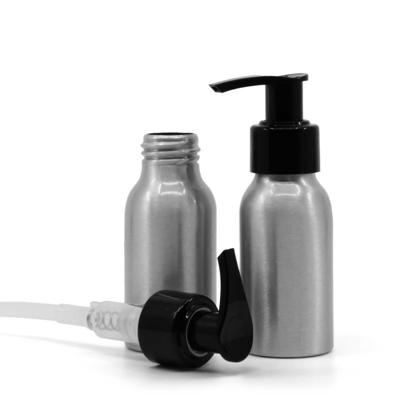 Pompe en plastique noir pour émulsions, lotions corporelles et autres liquides visqueux.Convient aux flacons avec un diamètre de col de 24 mm.
