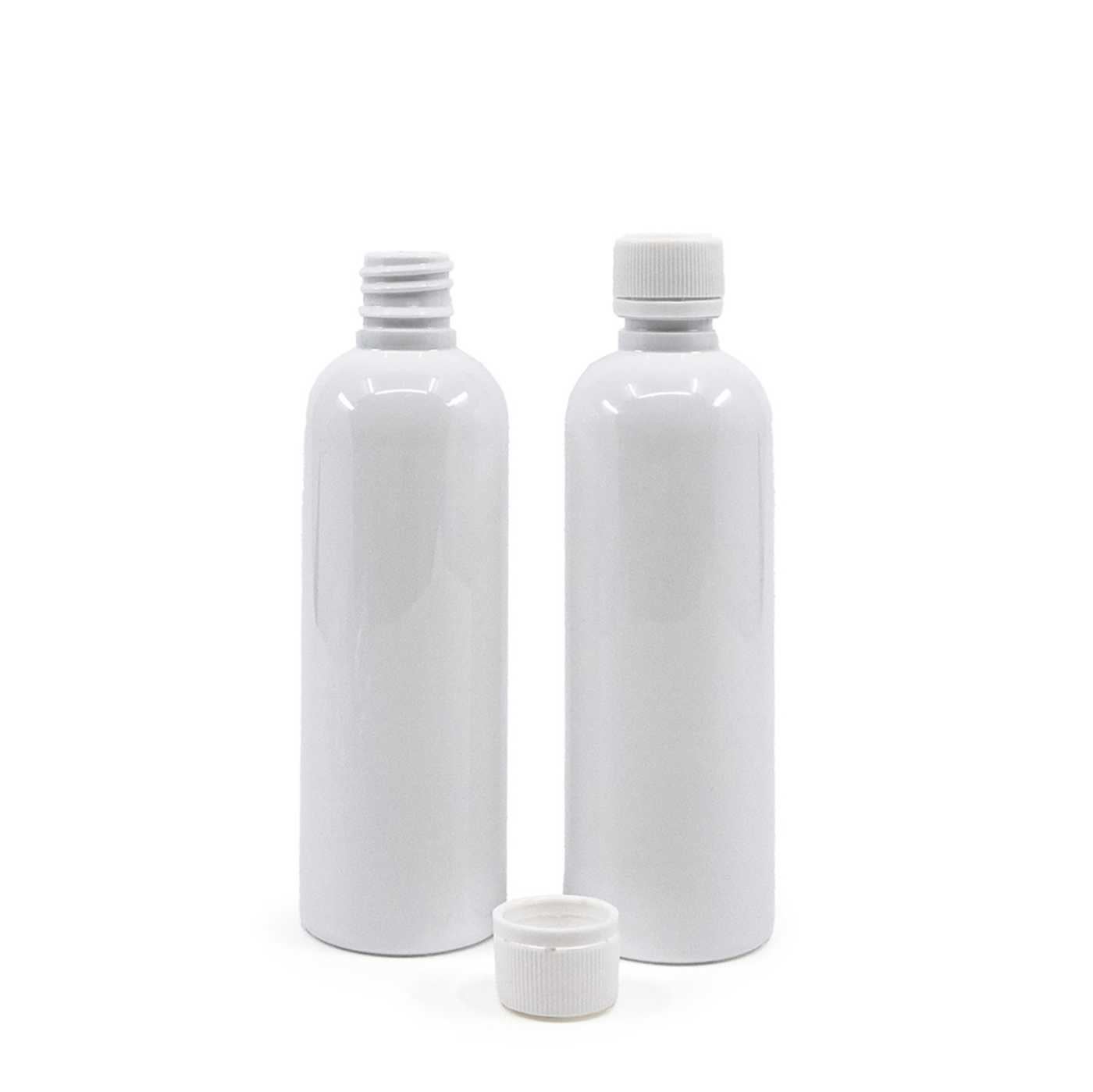 Bouteille en plastique blanc en PET avec une surface brillante.