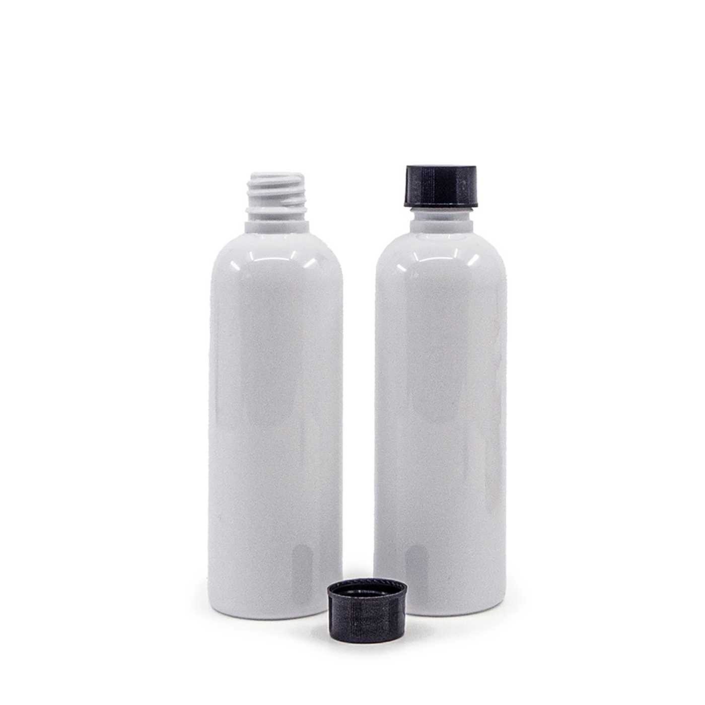 Bouteille en plastique blanc en PET avec une surface brillante.