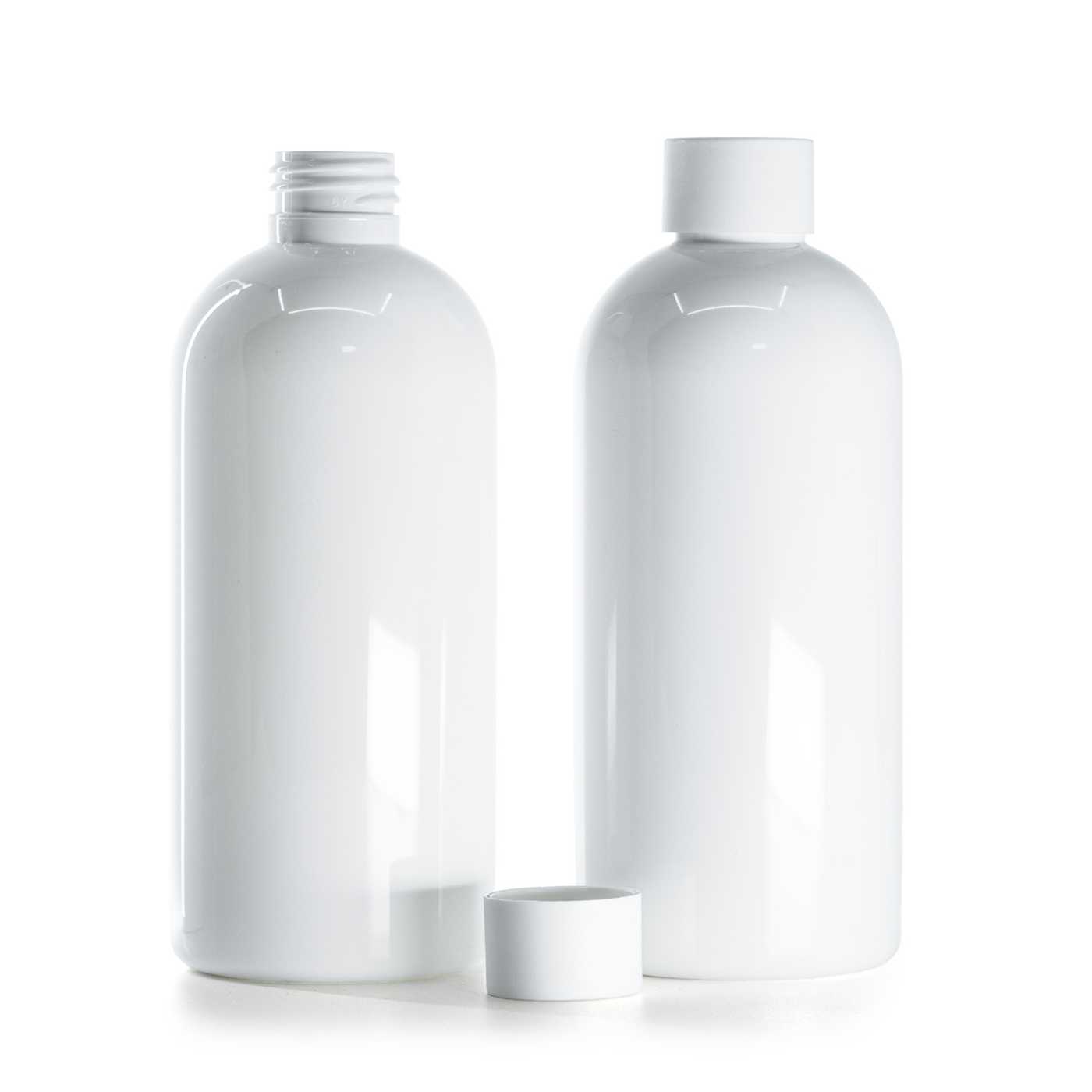 Flacon en plastique blanc, bouchon blanc mat, 300 ml