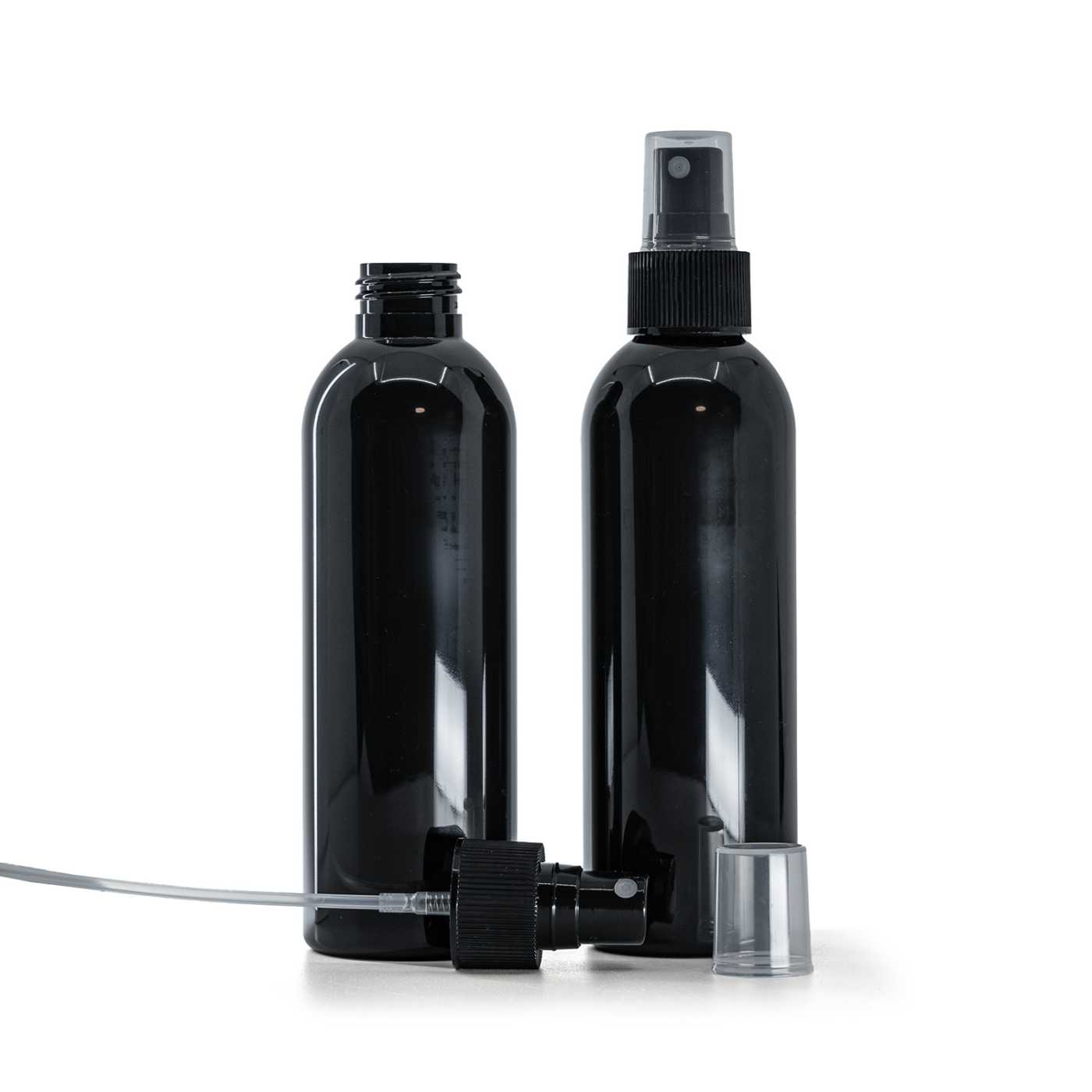 Flacon en plastique noir brillant avec pulvérisateur noir, 200 ml