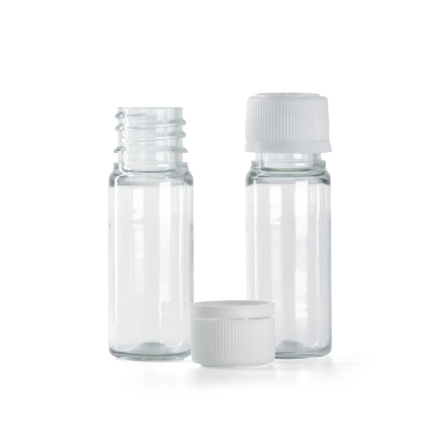 Flacon en plastique transparent, flacon pharmaceutique, bouchon inviolable en plastique blanc, strié