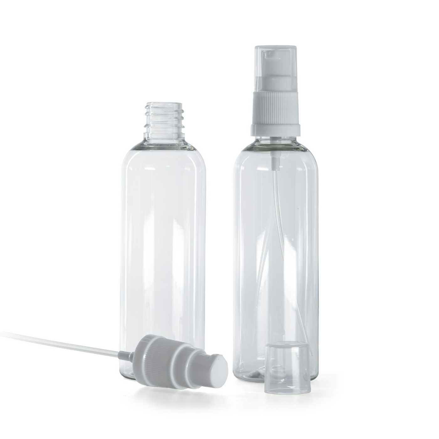 Bouteille en plastique transparent en PET avec une surface brillante. Volume : 100 ml, volume total 117 mlHauteur du flacon : 122 mmDiamètre du flacon : 38 mmC... read more