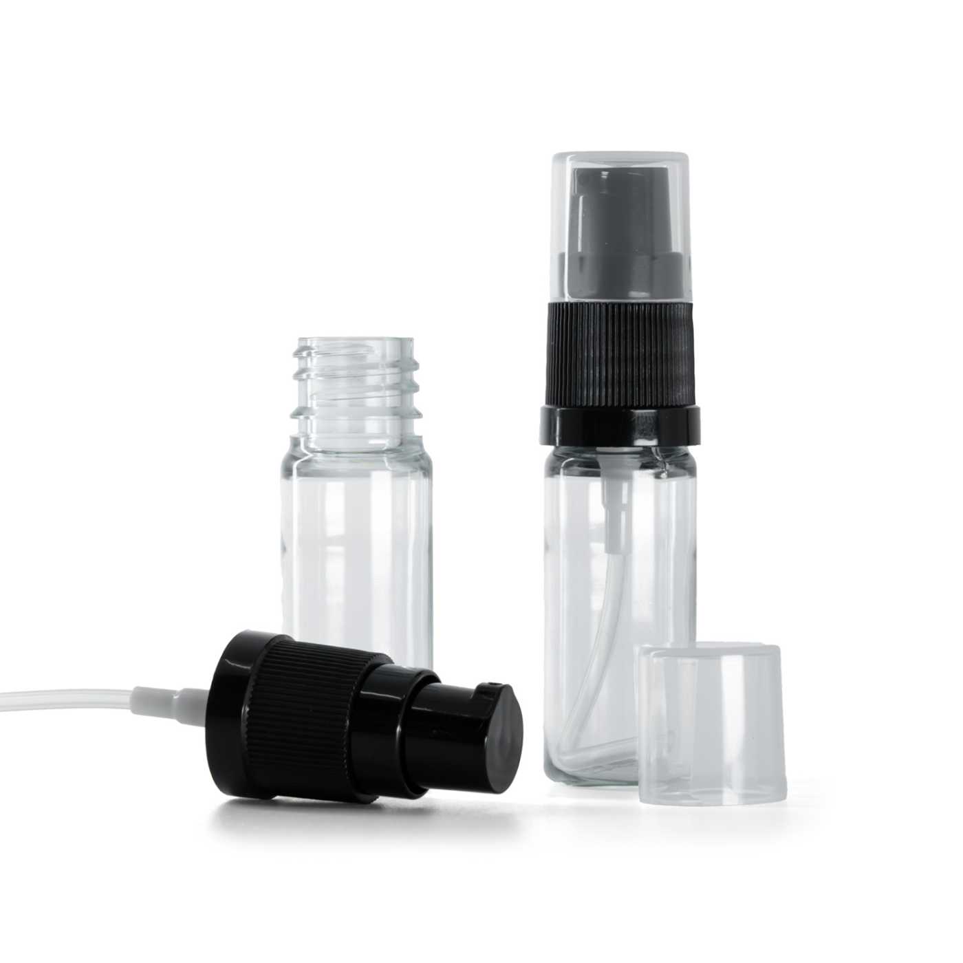 Distributeur de crème en plastique noir avec bouchon transparent. Convient aux bouteilles ayant un diamètre de col de 18 mm.
