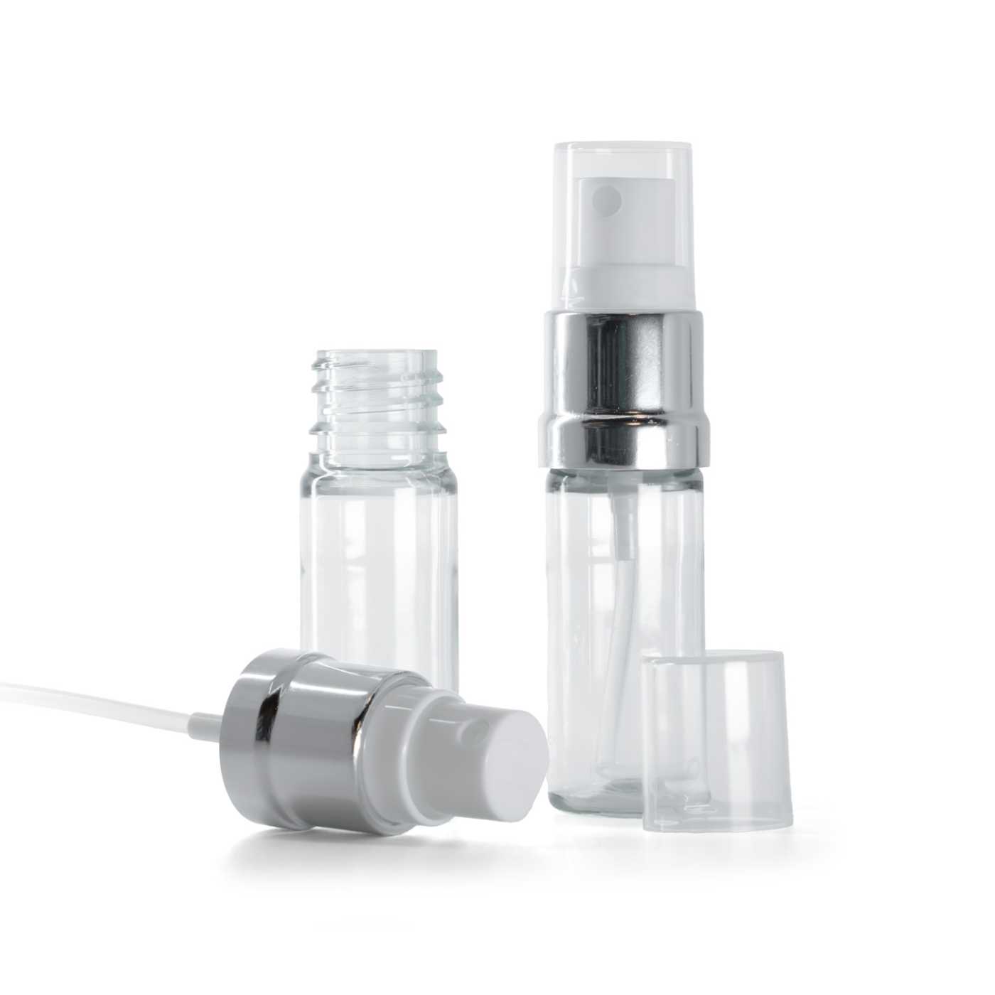 Flacon en plastique transparent, spray blanc argenté, 10 ml