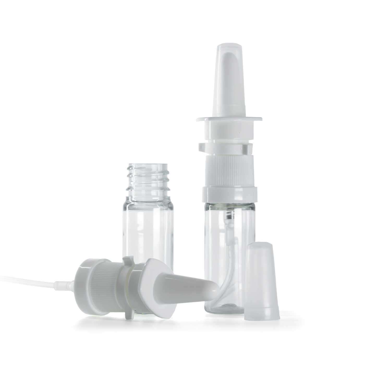 Flacon en plastique transparent, spray nasal blanc, 10 ml