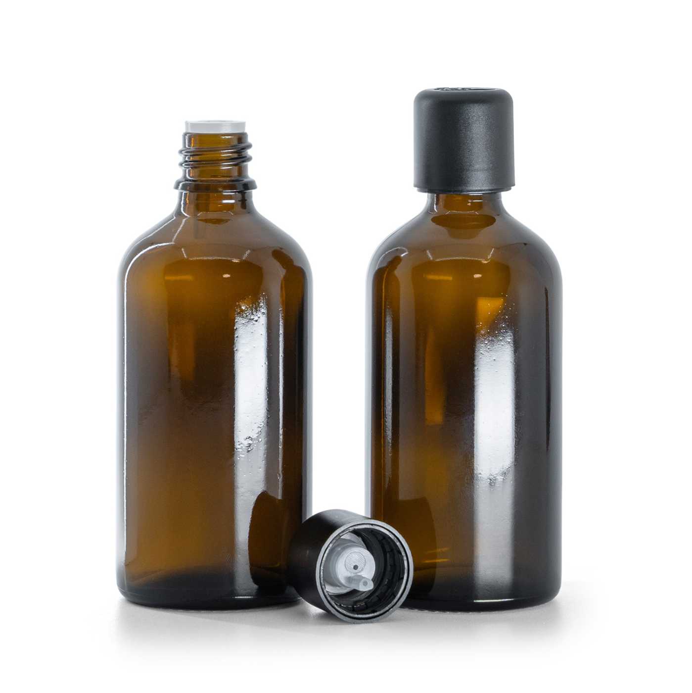 Le flacon en verre avec couvercle noir et fermeture de sécurité est un récipient pratique pour l'emballage sûr et hygiénique de produits liquides où la stabilité du matériau, un remplissage propre et une fermeture fiable sont importants. Le verre est neutre, n'affecte pas l'odeur ou la composition du contenu et convient pour un dosage précis dans les petits lots. Le design sombre réduit naturellement la transmission de la lumière et aide à protéger les ingrédients les plus sensibles des rayons UV. L'emballage est également de qualité alimentaire.