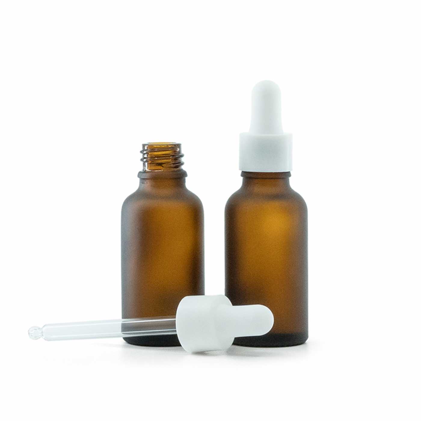 Compte-gouttes en plastique blanc givré, adapté aux flacons ayant un diamètre de col de 18 mm et un volume de 30 ml.Longueur du tube en verre : 71 mm