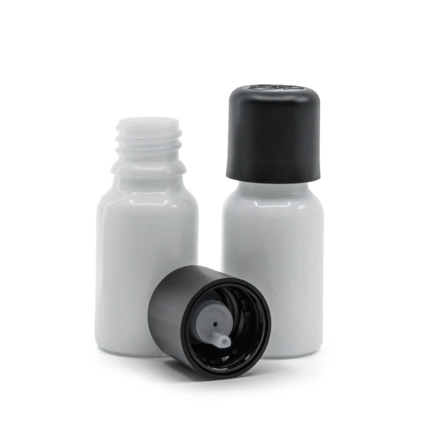 Flacon en verre blanc 10 ml, bouchon inviolable noir avec compte-gouttes