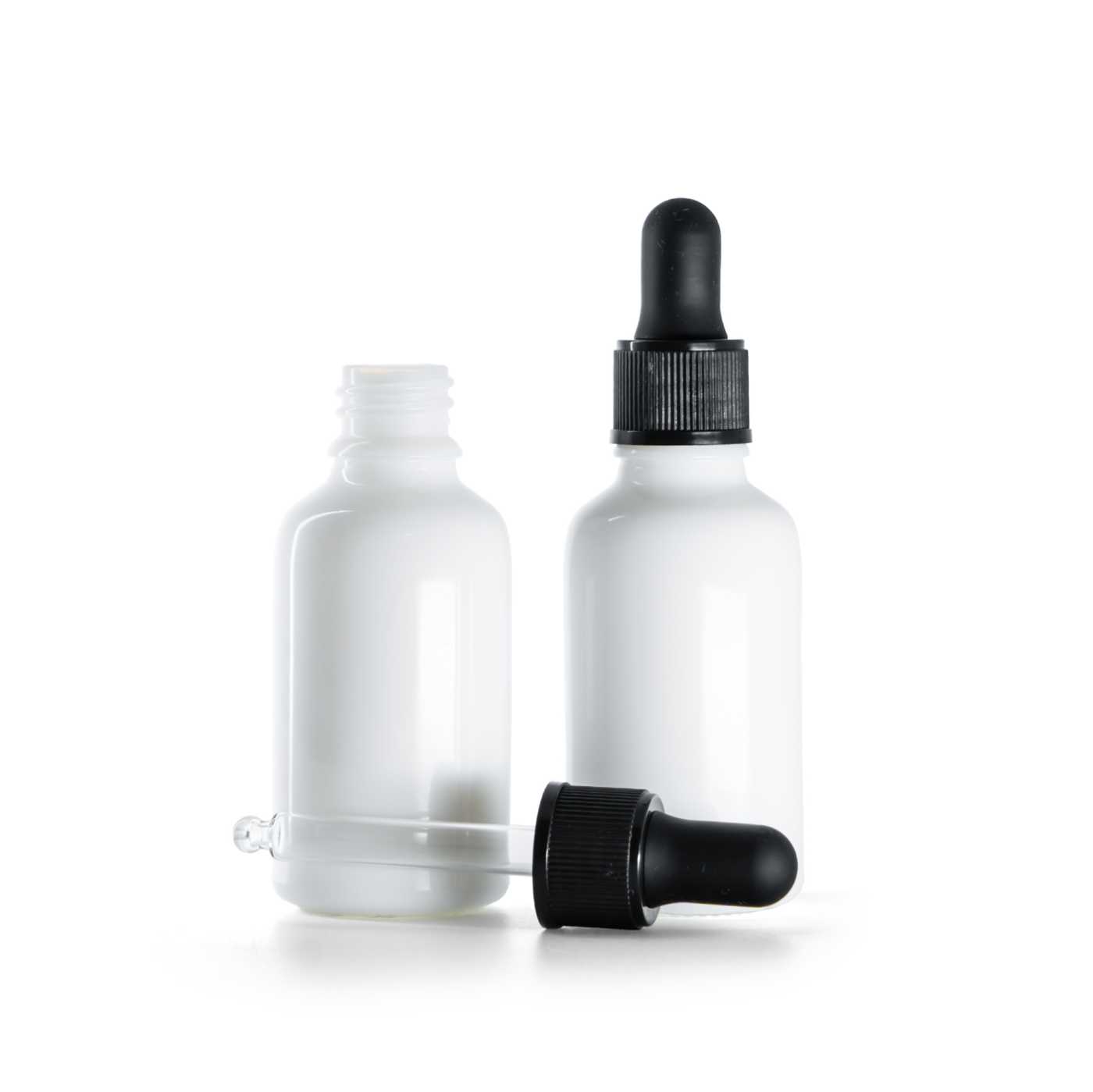 Flacon en verre – flacon compte-gouttes avec surface blanche mate et pipette noire est un emballage professionnel adapté au conditionnement de préparations cosm... description complète