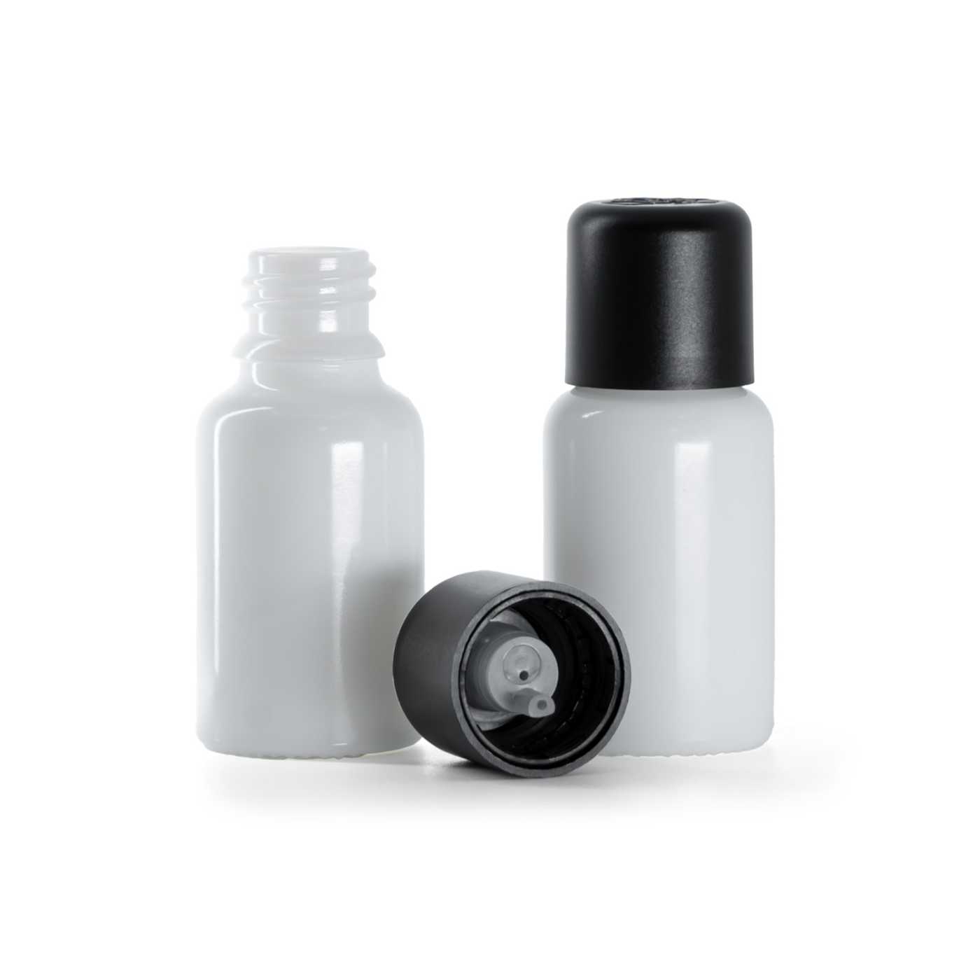 Compte-gouttes en plastique pour flacons en verre, 18 mm, court. Se place dans le goulot du flacon.