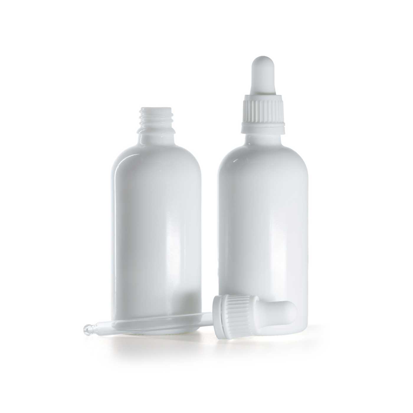 Compte-gouttes en plastique blanc, adapté à un flacon d'un diamètre de col de 18 mm et d'un volume de 100 ml.