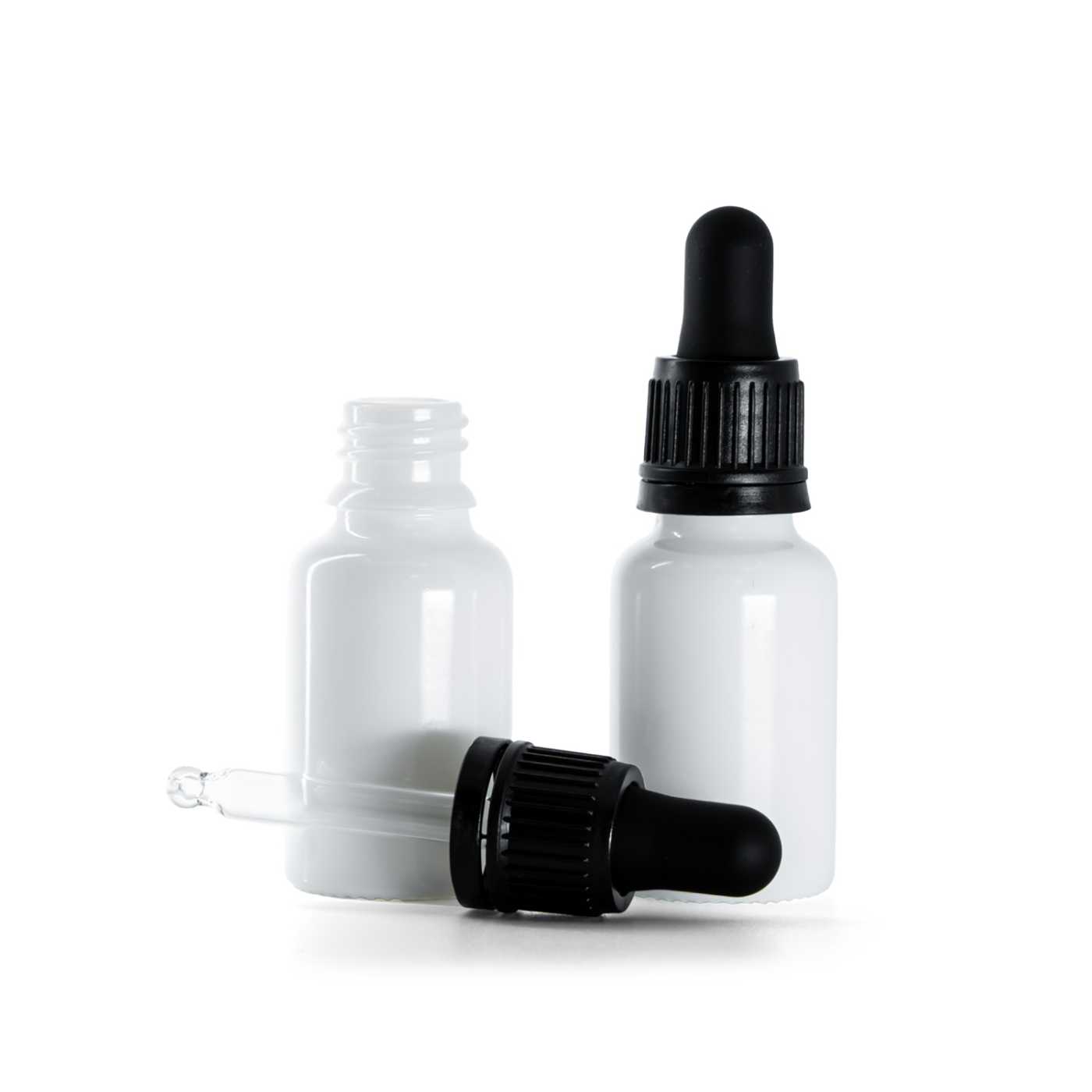 Flacon en verre blanc, compte-gouttes noir, 15 ml