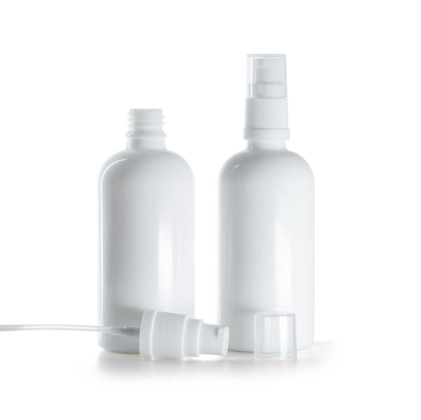 Flacon en verre blanc, pompe à lotion blanche, 100 ml