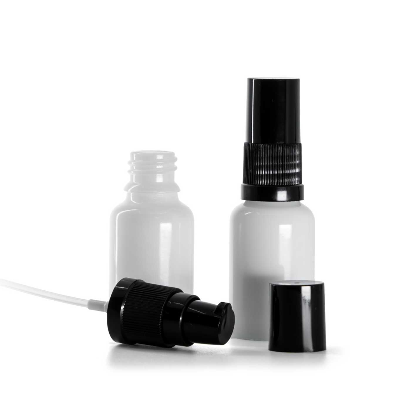 Distributeur de crème en plastique noir avec bouchon opaque noir. Il convient à tous nos flacons en verre.