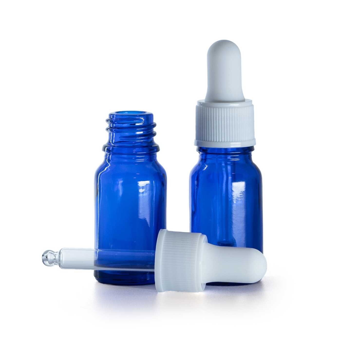 Flacon en verre bleu avec compte-gouttes blanc mat 10 ml