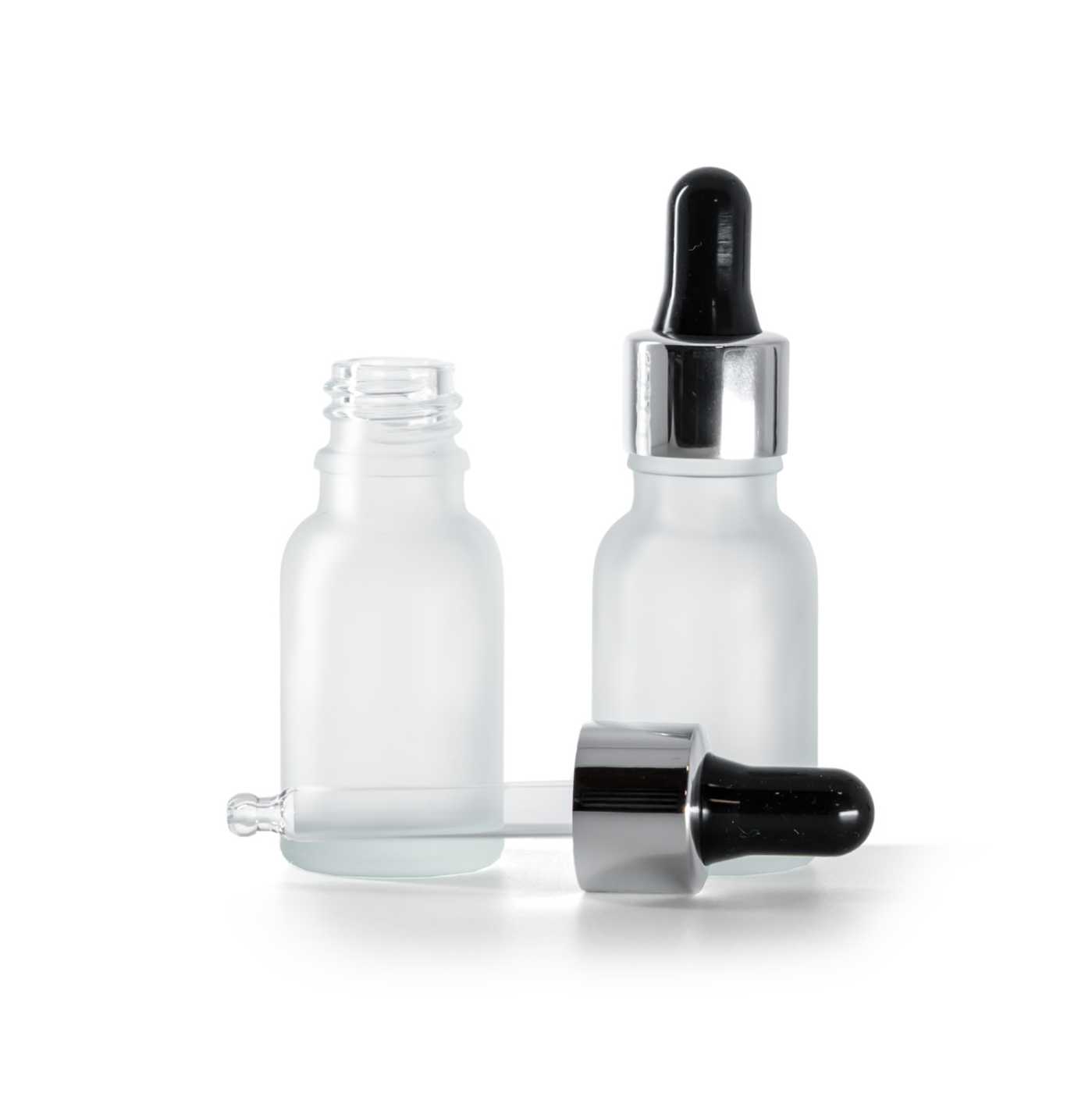 Flacon en verre clair dépoli avec pipette noir argenté, 15 ml
