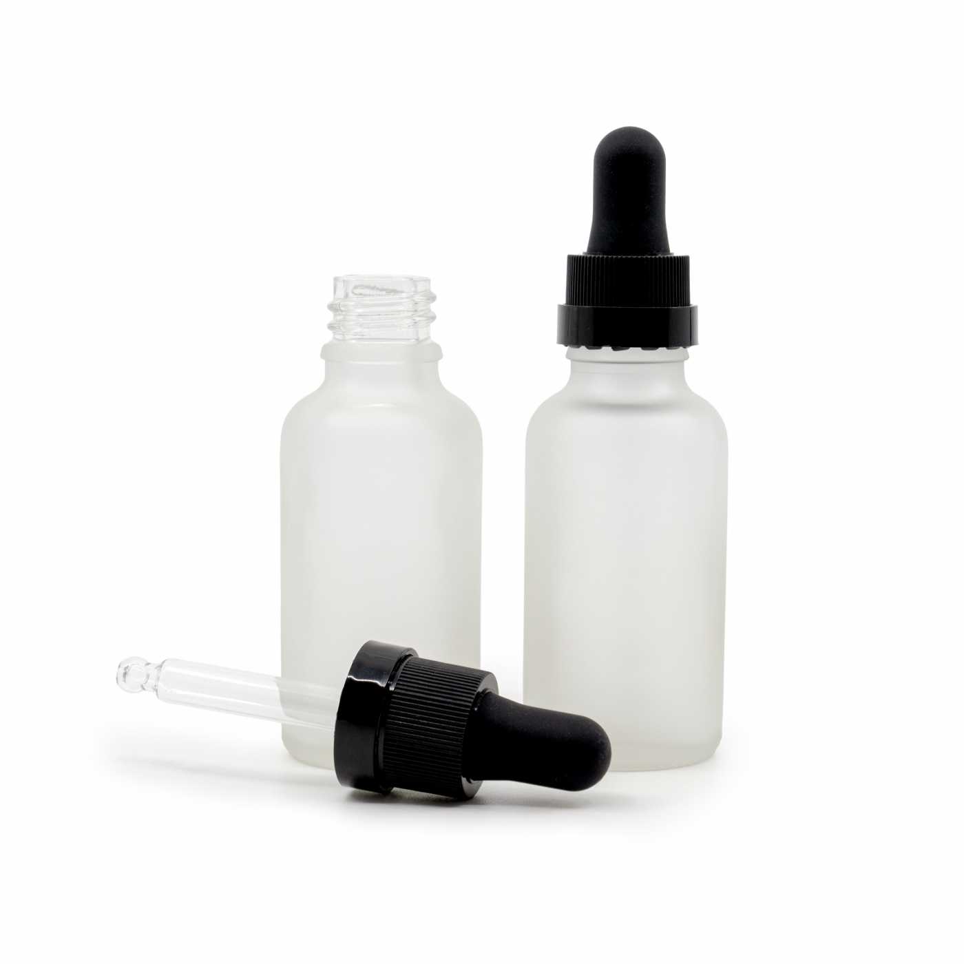 Flacon en verre dépoli transparent, compte-gouttes noir avec anneau brillant, 30 ml