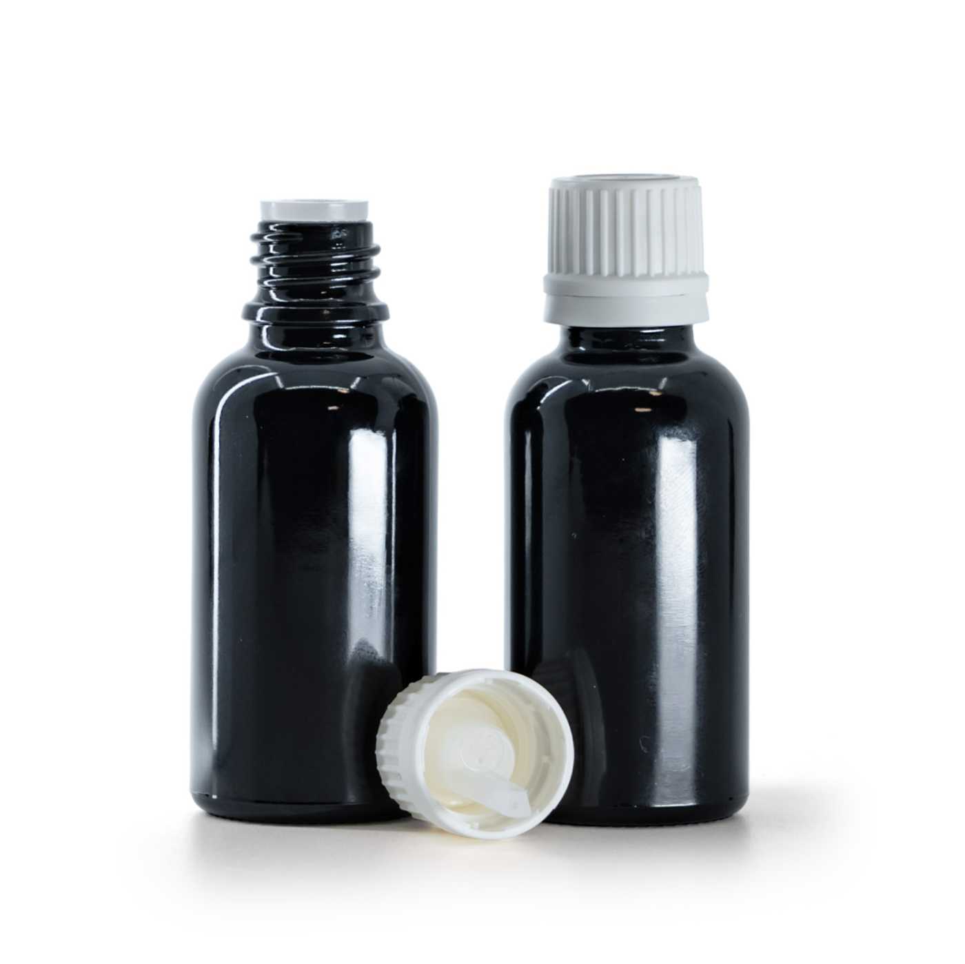 Le flaconen verre est fabriqué en verre noir de haute qualité avec une surface brillante. Cela garantit que la lumière ne pénètre pas dans le flacon et offre ainsi une protection contre les rayons UVA et UVB.