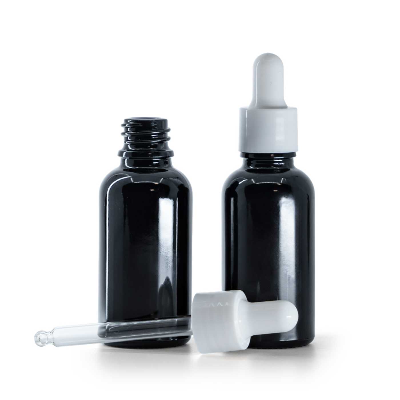 Le flaconen verre est fabriqué en verre noir de haute qualité avec une surface brillante. Cela garantit que la lumière ne pénètre pas dans le flacon et offre ainsi une protection contre les rayons UVA et UVB.