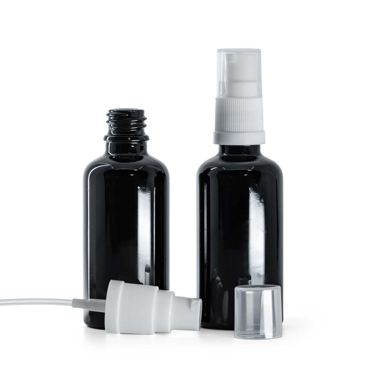 Flacon en verre, noir brillant, distributeur blanc, 50 ml