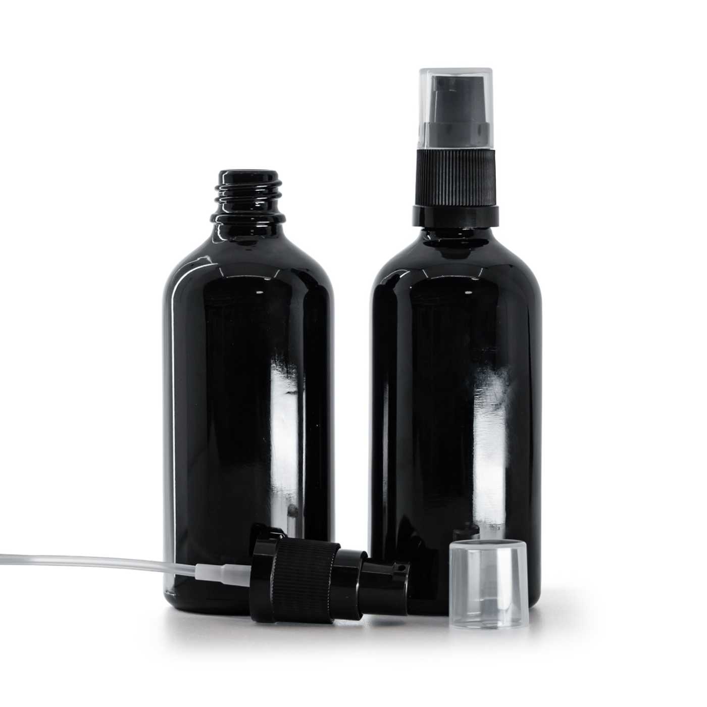 Flacon en verre noir brillant, pompe à lotion, 100 ml
