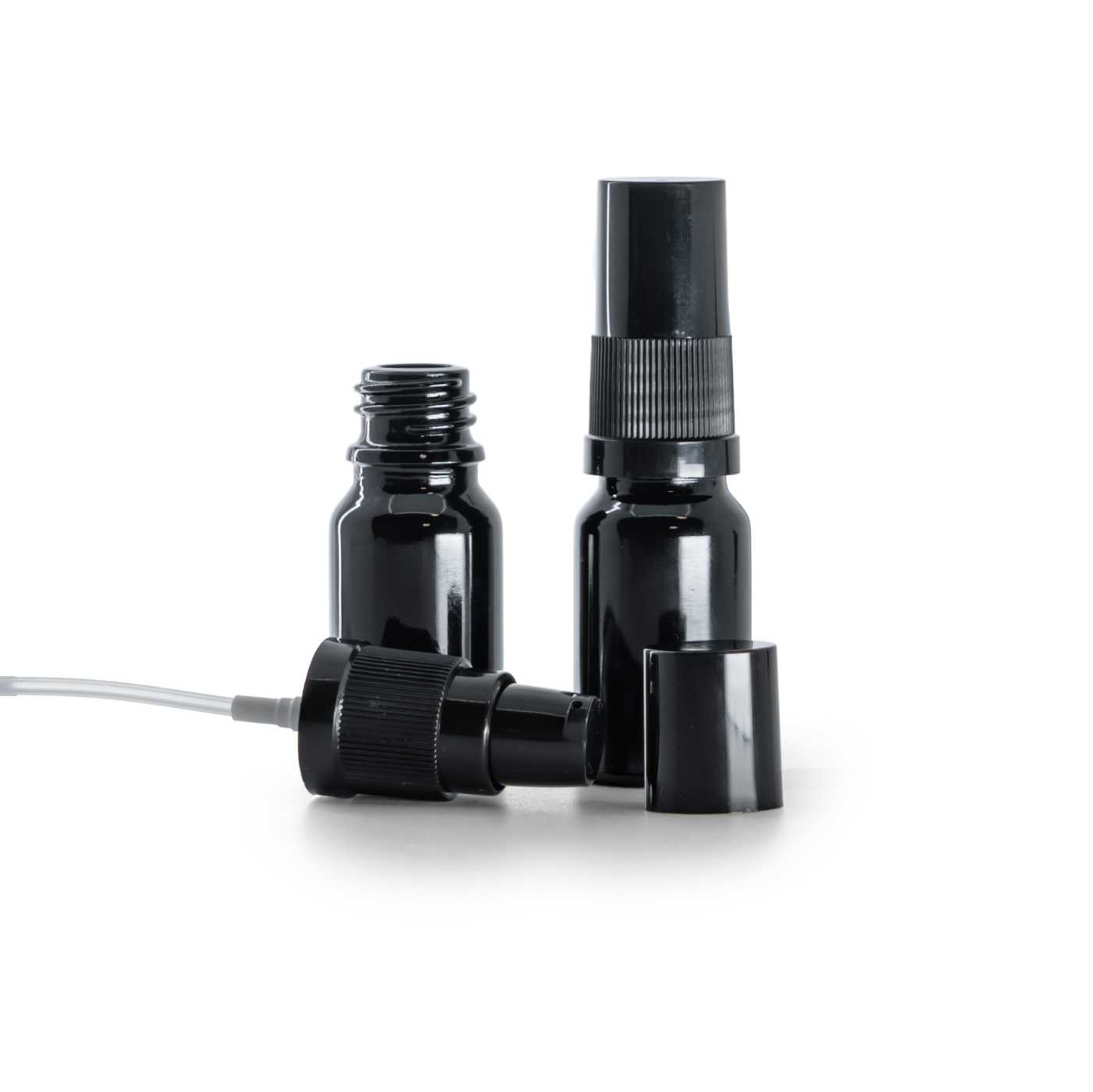 Flacon en verre noir brillant, pompe à lotion avec bouchon noir, 10 ml